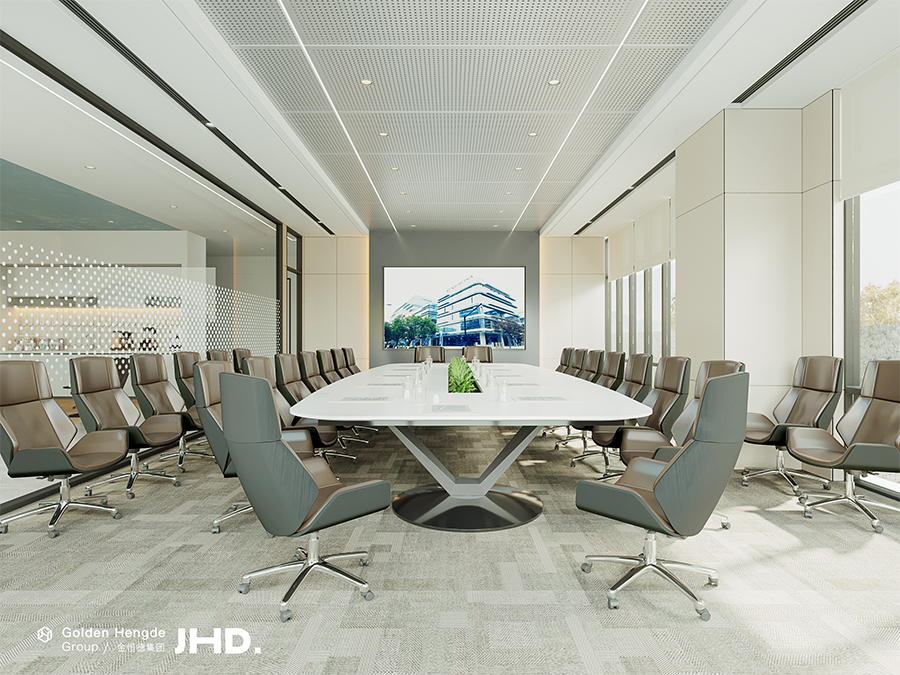 四樓的會議室是除了夾層的培訓室外最大的一個會議空間,總共可以容納35-40人,整體風格現(xiàn)代極簡偏商務(wù)屬性。