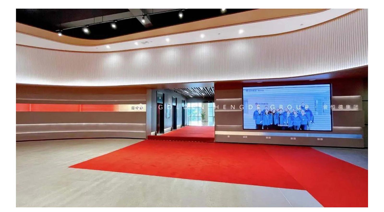 水泥肌理漆加上凹印的文字,局部還嵌入了亞克力透光板,很考驗施工工藝與工人做事的耐心,木飾面與各材料的銜接處理,稍有不慎,就會給人做工“粗糙“的感覺,與效果圖對比基本上做到了90%的還原度。