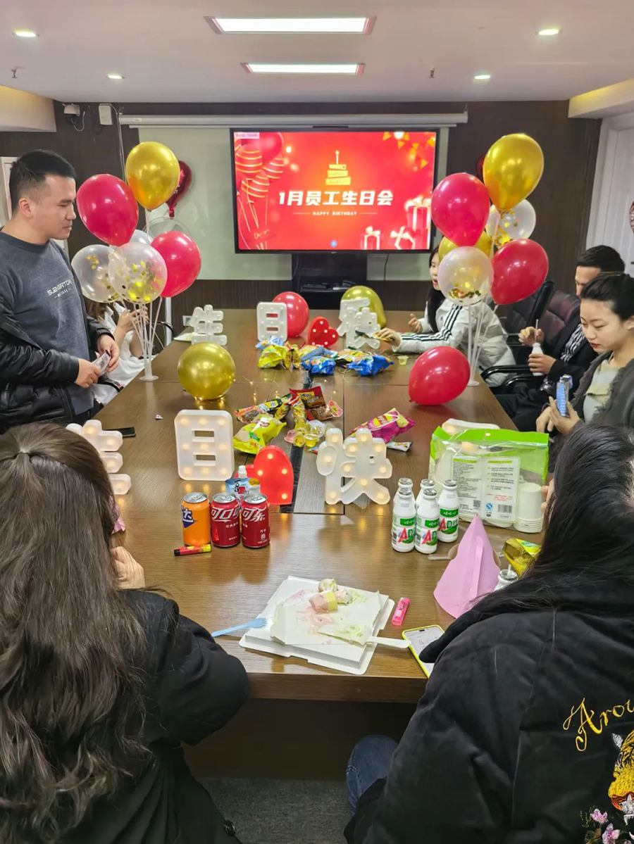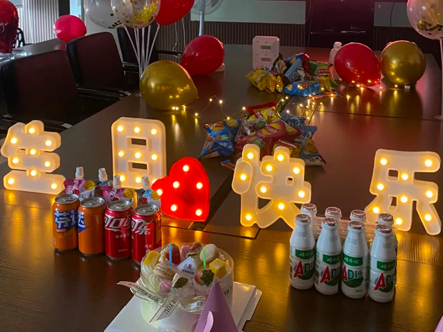 整個(gè)生日會(huì)充滿了歡聲笑語(yǔ),大家為小壽星們唱著生日歌送上生日祝福,一同分享美食和飲品。彼此交流著工作和生活。同時(shí)公司領(lǐng)導(dǎo)也特意為生日員工準(zhǔn)備生日賀卡及生日禮物,在這個(gè)特殊的時(shí)刻中感受到了公司大家庭的溫暖。
